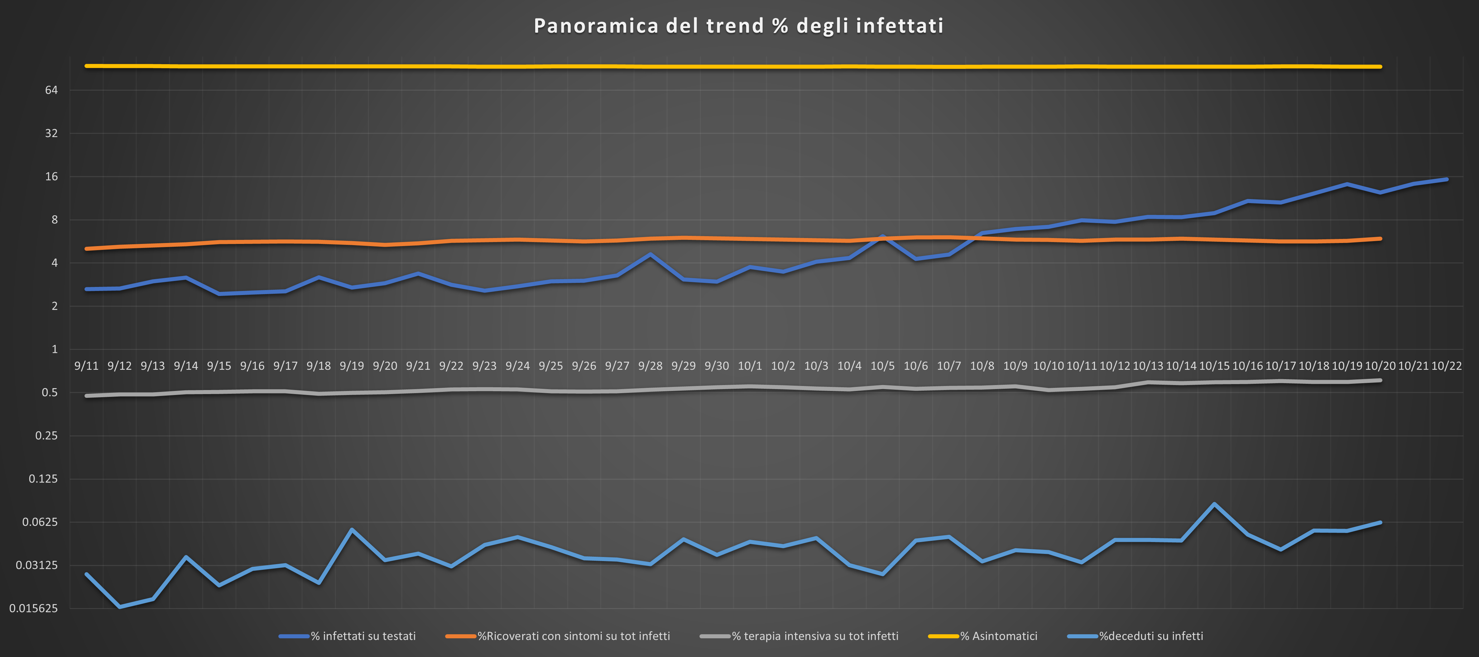Il trend in valori assoluti continua a crescere cosi' come il trend di infetti su Test eseguiti. Questo indica un rafforzamento OGGETTIVO della pandemia.