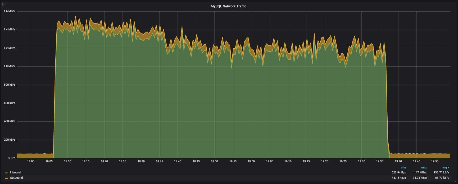 The amount of data on transmitted and received on PXC was higher (good) than Mariadb:
