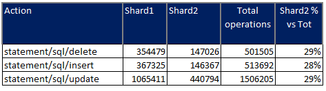 Once the data is loaded we will have the 2 shards with different numbers of records, if all went well the shard2 should have ¼ of the total and shard1 ¾ .
