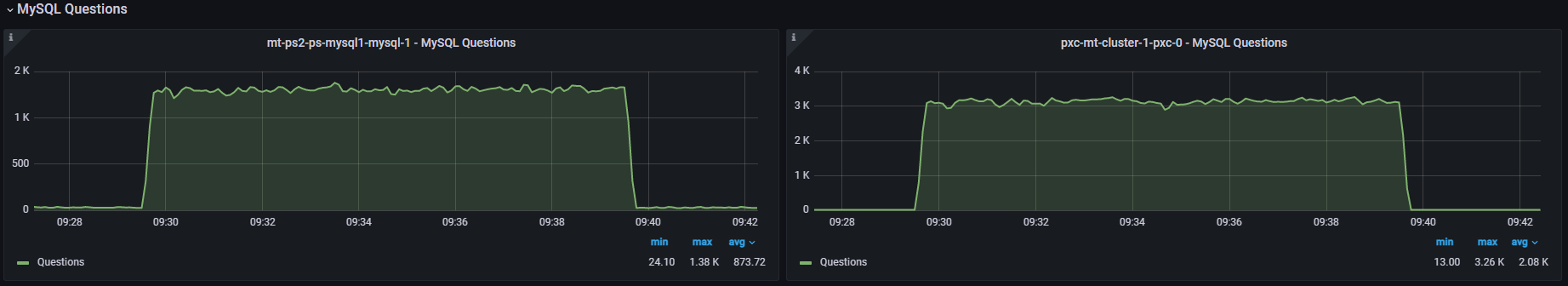 mysql> select current_user(), @@hostname;select count(*) from windmills1; +----------------+--------------------+ | current_user() | @@hostname | +----------------+--------------------+ | dba_g1@% | mt-cluster-1-pxc-0 | +----------------+--------------------+ 1 row in set (0.00 sec) +----------+ | count(*) | +----------+ | 287 | +----------+ 1 row in set (0.01 sec)