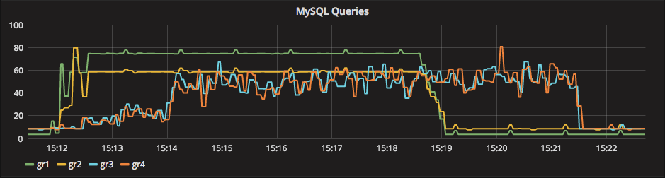 Doubling the load in the Test3 show the same behavior, having ProxySQL reach his limit for the traffic duplication.